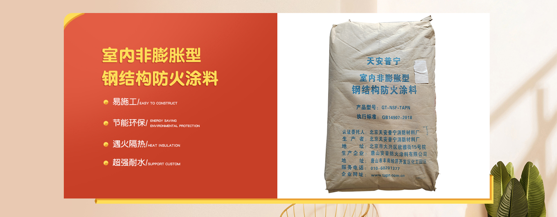 北京天安普寧消防材料廠是一家從事防火涂料二十多年生產(chǎn)企業(yè),企業(yè)集研制開發(fā)、生產(chǎn)銷售及各類防火涂料施工為一體。 企業(yè)員工總數(shù)100人,其中管理人員20人,科研人員10人,銷售50人,其他員工十多人。企業(yè)生產(chǎn)用地面積2000平方米左右,辦公用地面積1000平方米。擁有先進的生產(chǎn)設備20多臺,年生產(chǎn)量10000余噸。  企業(yè)擁有一支高學歷、資歷深的研發(fā)隊伍,以科學的管理,先進成套的生產(chǎn)流水線設備及完善的產(chǎn)品質(zhì)量檢驗措施,開發(fā)出TAPN系列防火涂料產(chǎn)品,可以滿足于各類建筑工程中不同基材、不同技術要求的防火保護,天安普寧系列防火涂料全部經(jīng)過《國家消防及阻燃產(chǎn)品質(zhì)量監(jiān)督檢驗中心》檢驗,理化性能合格,防火性能高,通過《應急管理部消防產(chǎn)品合格評定中心》認證并獲得《消防身份信息標識》。 企業(yè)結合多年的工程施工實踐經(jīng)驗,培養(yǎng)了一支專業(yè)有素、經(jīng)驗豐富、高質(zhì)量、效率高的防火涂料施工隊伍,可承攬各類高層、多層、大跨度廠房及網(wǎng)架鋼結構防火涂料噴涂施工服務。 企業(yè)始終為用戶全心全意服務,不斷滿足各建設單位的要求,共同為我國的建筑消防事業(yè)作出更大的貢獻,衷心感謝新老客戶的支持,全體員工熱情歡迎廣大用戶的光臨惠顧。